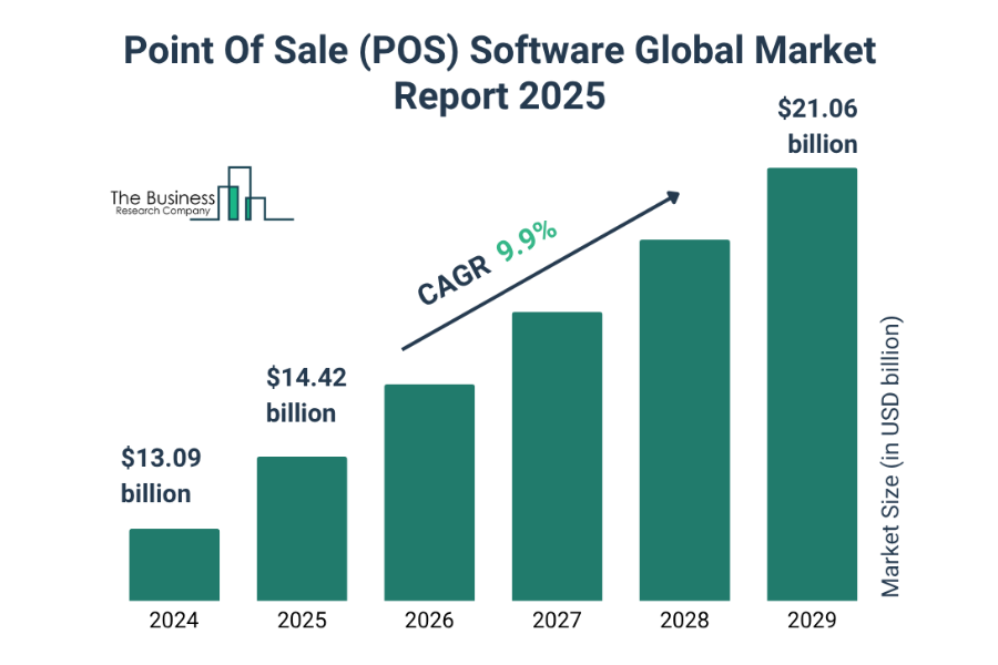 The Point of Sale (POS) software market has reached $13.09 billion in 2024 and is projected to grow to $21.06 billion by 2029, representing a compound annual growth rate (CAGR) of 9.9%. This trajectory underscores the expanding influence of POS systems as businesses continue to modernize their transaction infrastructure.